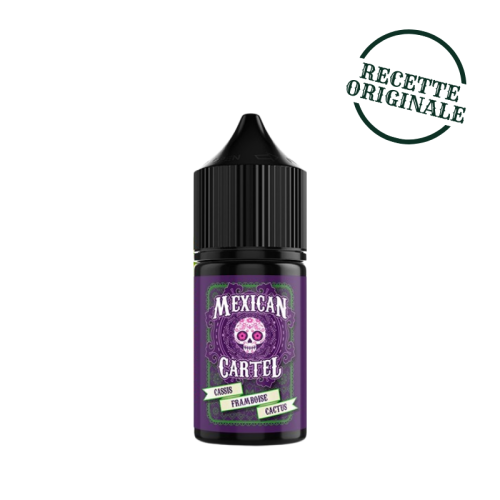 Le concentré Cassis Framboise Cactus 30 ml de Mexican Cartel est un arôme concentré fruité frais aux saveurs fruitées de fruit du dragon, de fraise et de mûre avec une touche givrante de glaçons.