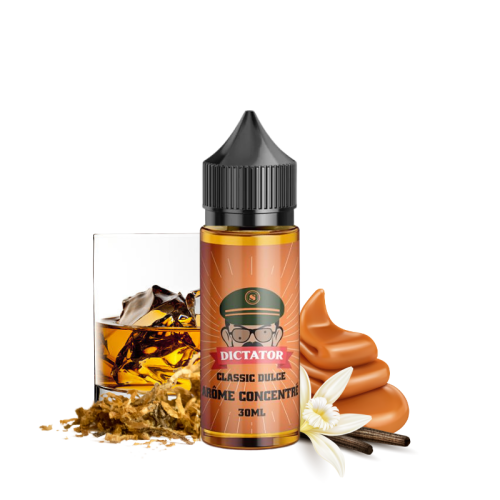 Avis aux amateurs d'e-liquides gourmands : découvrez le concentré Classic Dulce 30 ml de l'excellente gamme Dictator conçue par Savourea ! Les aromaticiens de cette marque française incontournable vous proposent un concentré aux arômes de whisky et de classic blond, réchauffés par des notes de caramel et de vanille.