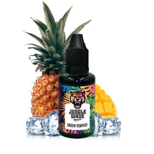 La célèbre marque malaisienne Jungle Wave vous propose le concentré Green Tempest 30 ml, une nouveauté destinée à vos préparations DIY composée d'arômes de mangue charnue et d'ananas au jus sucré, le tout enrobé d'une fraîcheur intense !
