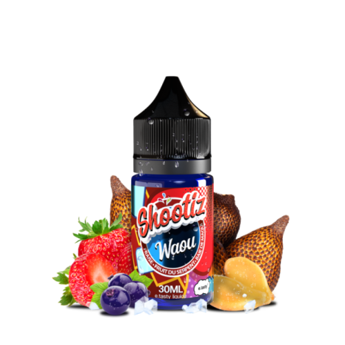 Découvrez la nouvelle gamme Shootiz imaginée par E-Tasty et explorez de nouveaux horizons fruités, frais et acidulés ! Le concentré Waou 30 ml Shootiz vous permettra de créer votre propre e-liquide DIY aux arômes de fruit du serpent, de fraise et de baie de maqui glacée !
