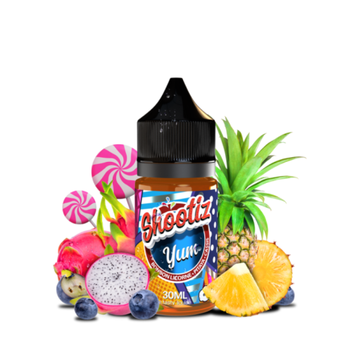 Découvrez la nouvelle gamme Shootiz imaginée par E-Tasty et explorez de nouveaux horizons fruités, frais et acidulés ! Le concentré Yum 30 ml Shootiz vous permettra de créer votre propre e-liquide DIY aux arômes de bonbons acidulés, de fruit du dragon, d'ananas et de cassis le tout glacé !