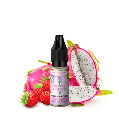 De l'arôme de fruit du dragon à la chair sucrée et de fraises sauvages au jus intense composent le concentré The Unicorn 10 ml, une création du Secret's Lab pour sa gamme Secret Garden !