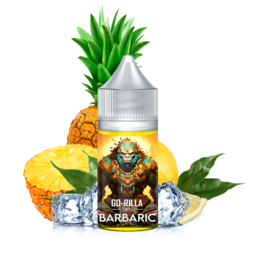 La marque française Go-Rilla Temple vous présente le concentré Barbaric 30 ml, un savant mélange d'arôme d'ananas bien sucrés tonifié par un zeste de citron jaune acidulé et beaucoup de fraîcheur !