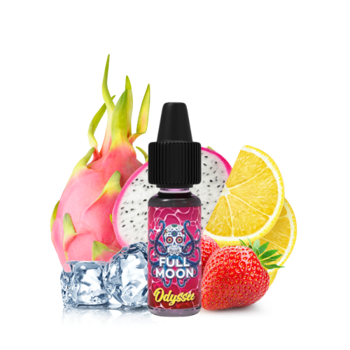 La marque malaisienne Full Moon vous présente le concentré Odyssée 10 ml de sa toute nouvelle gamme Abyss ! Un fruité frais pour vos créations DIY aux arômes doux et sucrés de fruits du dragon et de fraises, accompagnés d'un trait de citron jaune glacé !