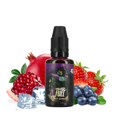 Avec le concentré Dark Shigeri 30 ml imaginé par Fighter Fuel, préparez un un e-liquide DIY aux arômes frais et fruités de fraise, de pulpe de grenade et de baies de cassis bien glacées !