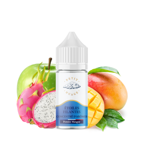 C'est un trio de fruits d'été que vous propose de découvrir la marque française Petit Nuage avec son concentré Étoiles Filantes 30 ml, aux arômes doux et acidulés de pomme verte, de mangue et de fruit du dragon !