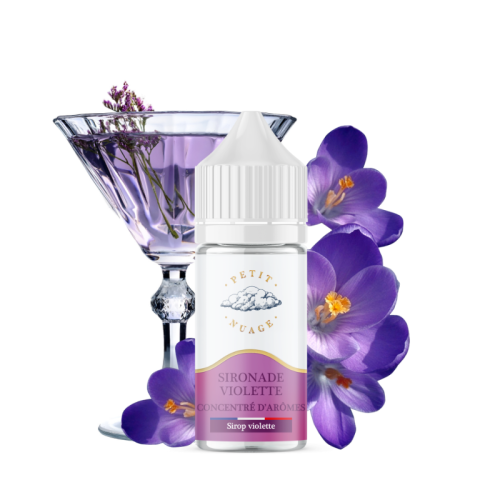 Avec le concentré Sironade Violette 30 ml, la marque française Petit Nuage signe une création douce et florale aux arômes de sirop à la violette sucrée, accompagné d'une limonade légère et pétillante !