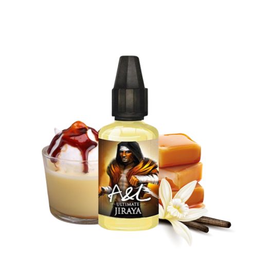 Ultimate présente Jiraya, un arôme concentré saveur île flottante et caramel. Profitez d'un délicieux dessert caramélisé à vapoter !