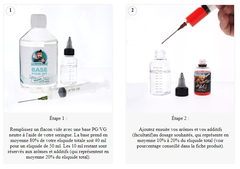 Dosage : Le fabricant recommande un dosage de 15% dans une base PG/VG de 50/50.