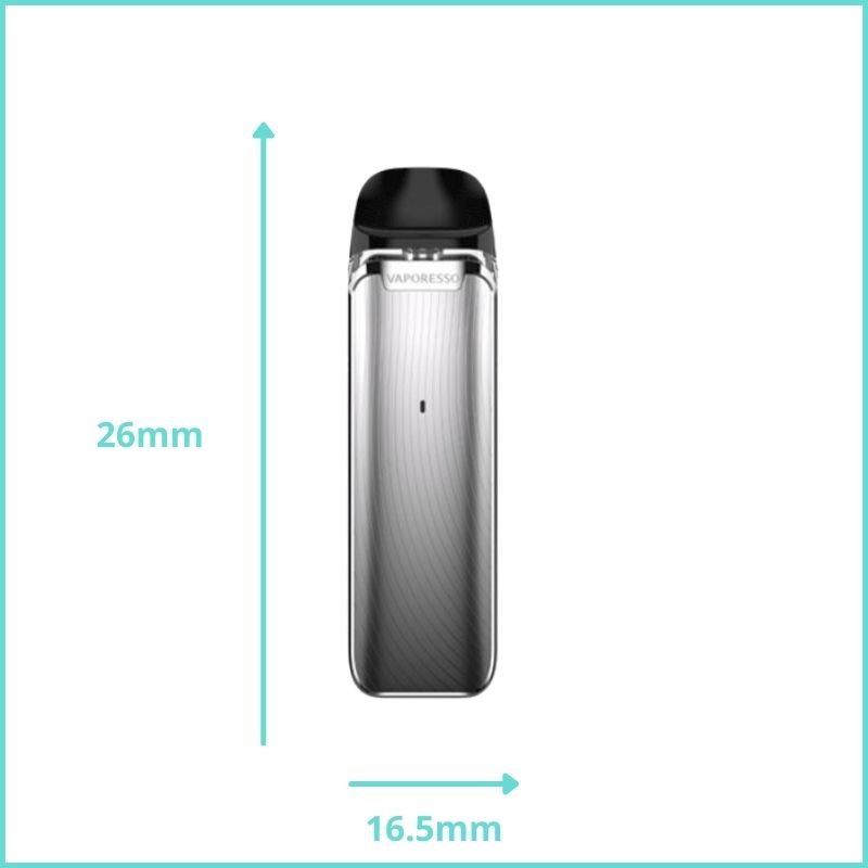 Avec son petit poids de 47g et ses dimensions minimalistes de 26mm de longueur pour 91.85mm de hauteur, la Pod Luxe Q se glisse facilement dans la poche et peut être emmener partout.