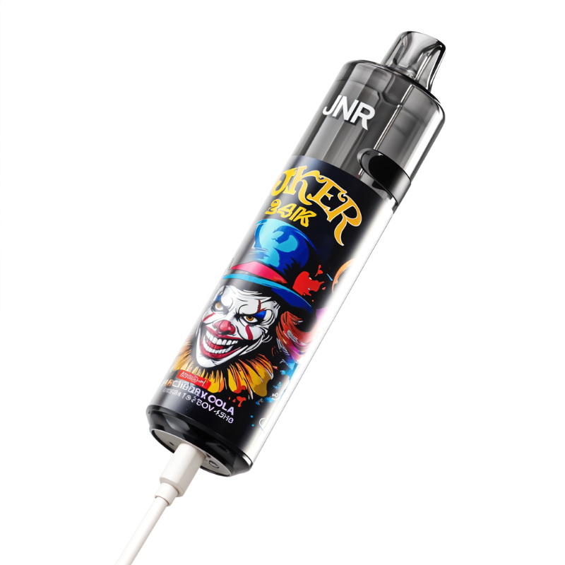 La Puff Joker 24000 signée JNR est une cigarette électronique rechargeable conçue pour offrir jusqu'à 24 000 bouffées. Elle est équipée d'une batterie intégrée de 800 mAh, se recharge via USB-C et dispose d'une cartouche préremplie de 2 ml, accompagnée de deux flacons de 10 ml d'e-liquide au sel de nicotine (20 mg/ml), totalisant 22 ml de liquide.